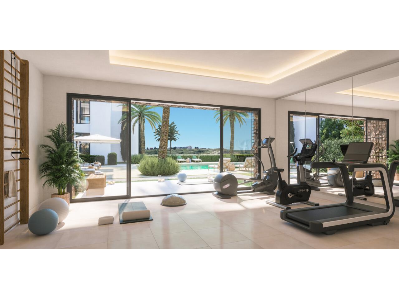 Este exclusivo apartamento ofrece dos dormitorios, dos baños y una amplia terraza de 12,26m². La cocina de alta gama cuenta con encimera de cuarzo y electrodomésticos Bosch, mientras que las persianas motorizadas en dormitorios y salón añaden un toque de modernidad. La urbanización, con solo